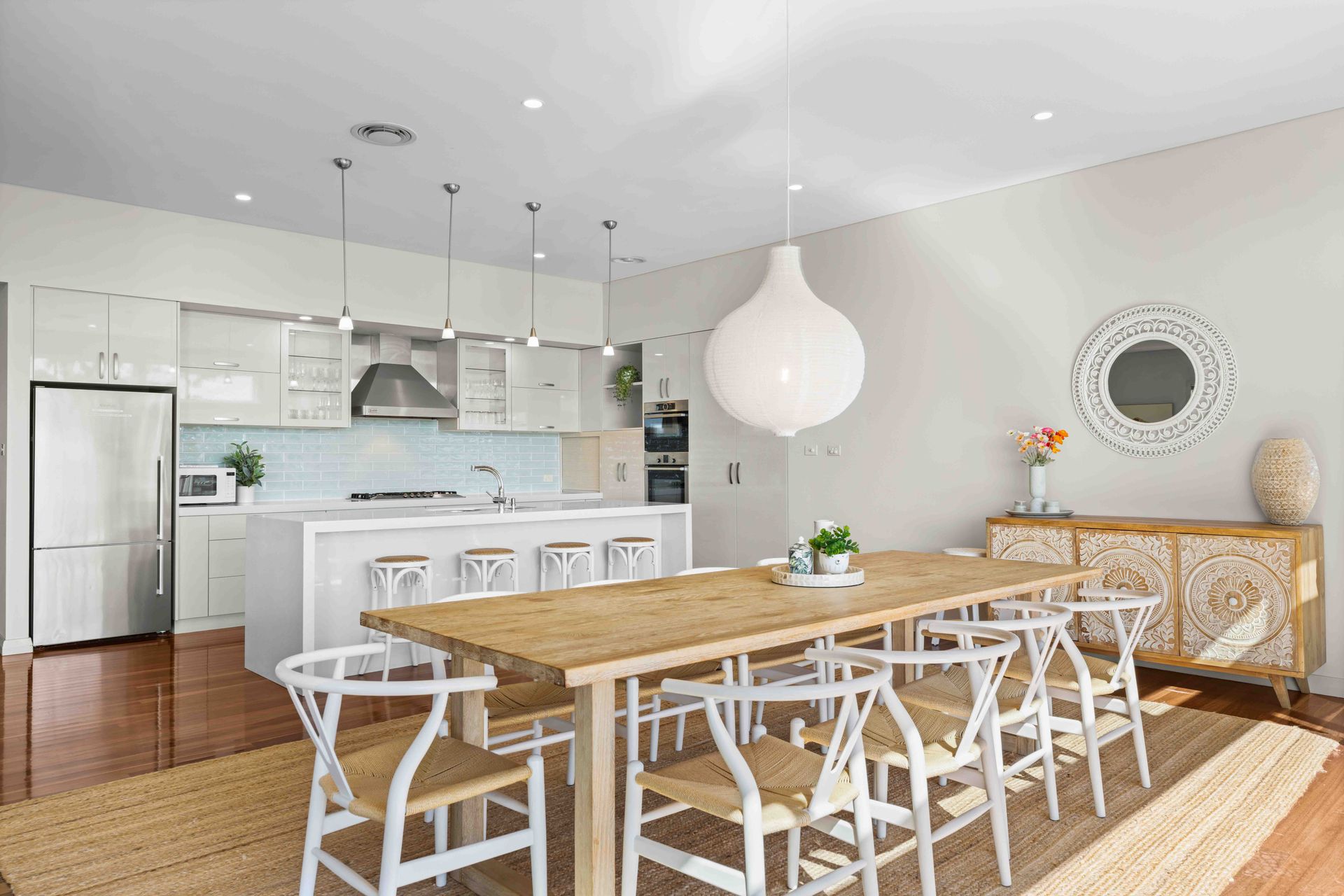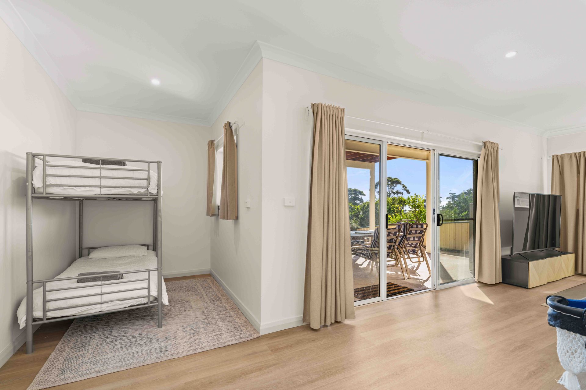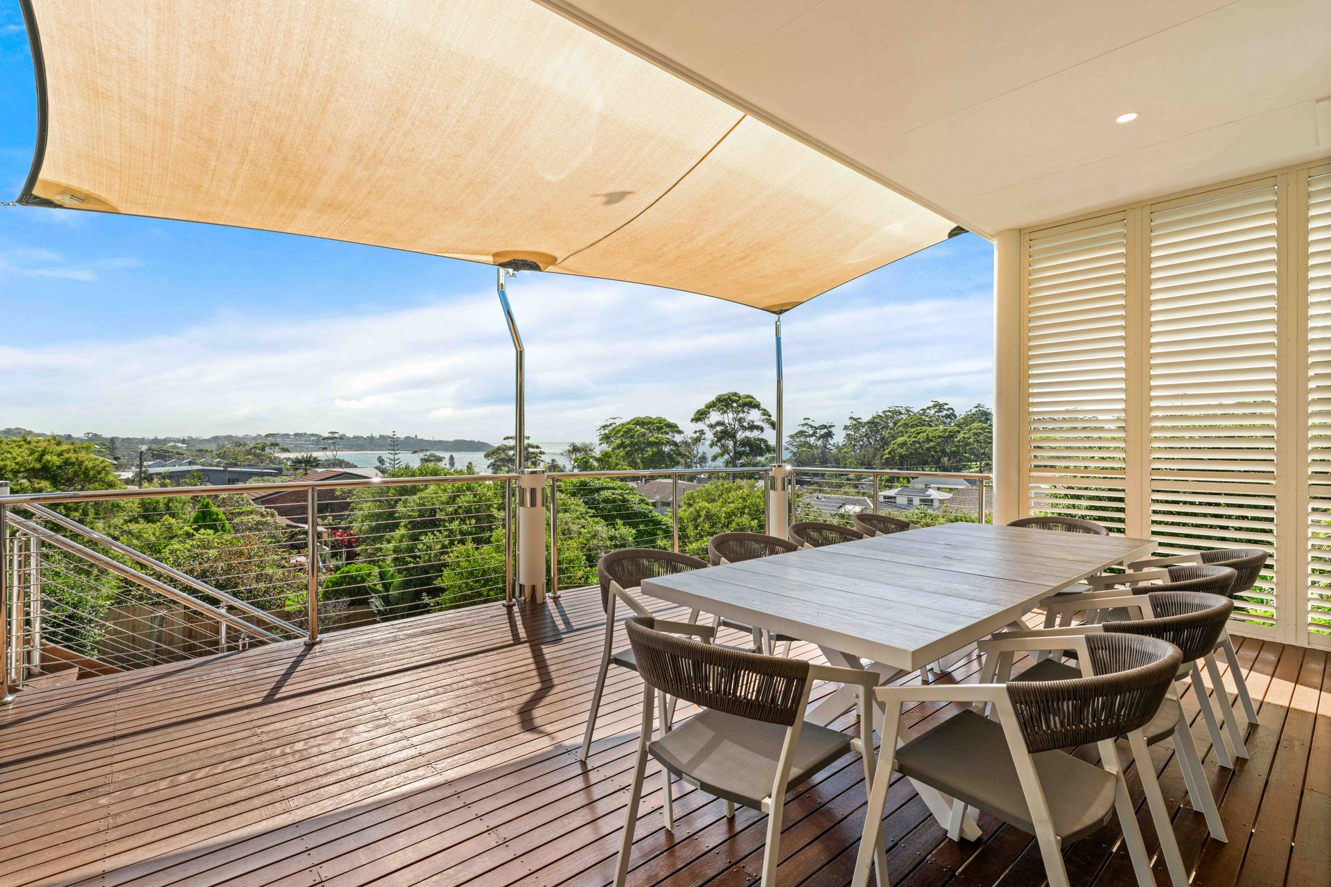 The beautifully equipped kitchen, complete with quality finishes and ample storage, becomes a hub for creating holiday feasts and morning coffees alike. Indoors and outdoors are perfectly connected, encouraging gatherings that make the most of the sea breezes and sunshine.