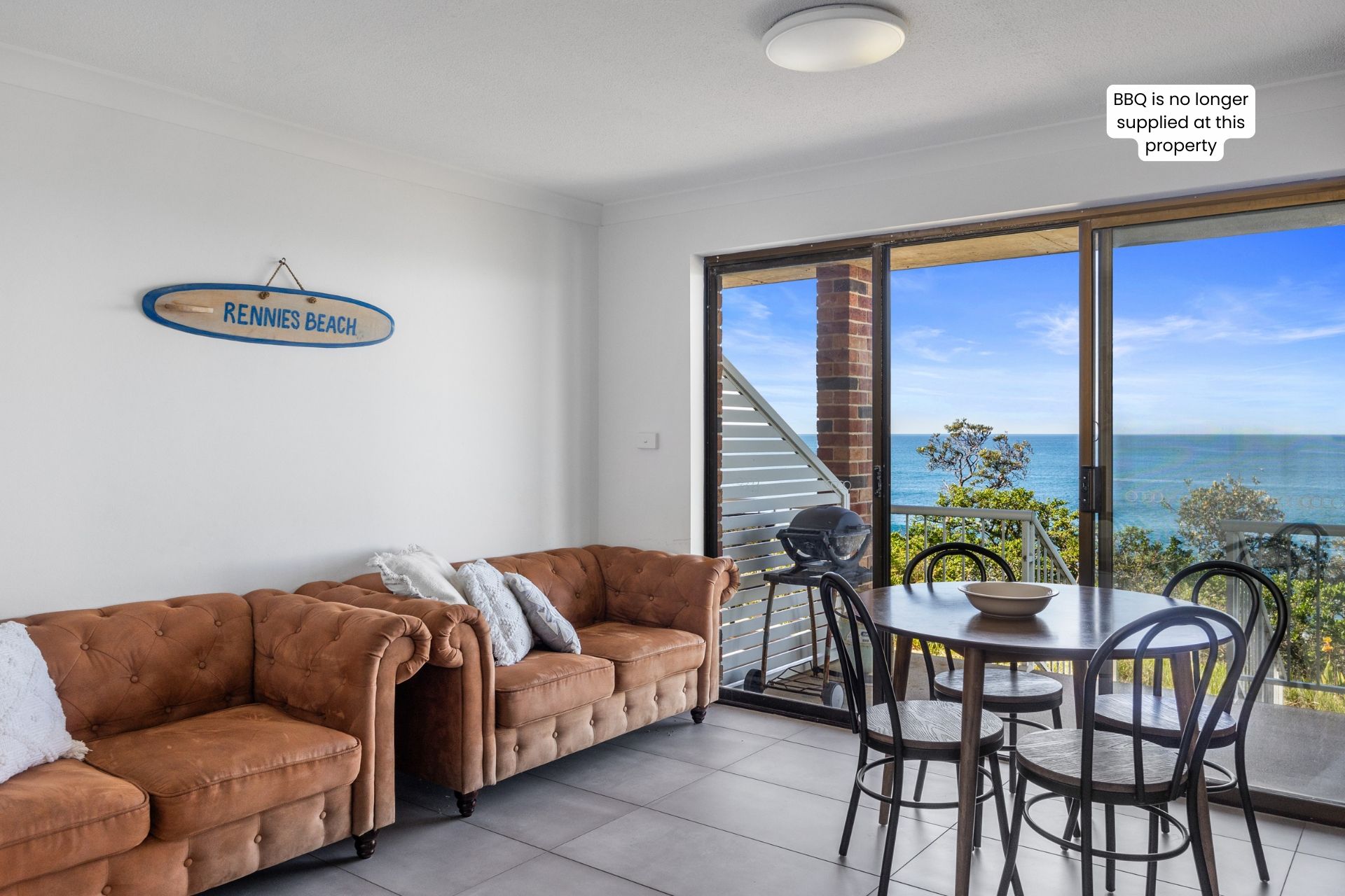The open living area provides a comfortable space to gather after sun-filled days, complete with a split system air conditioner. Soft natural light fills the space, helping the apartment feel peaceful from the moment you arrive. The adjoining kitchen is well equipped for meals and includes a Nespresso pod machine for a relaxed start to each morning.
