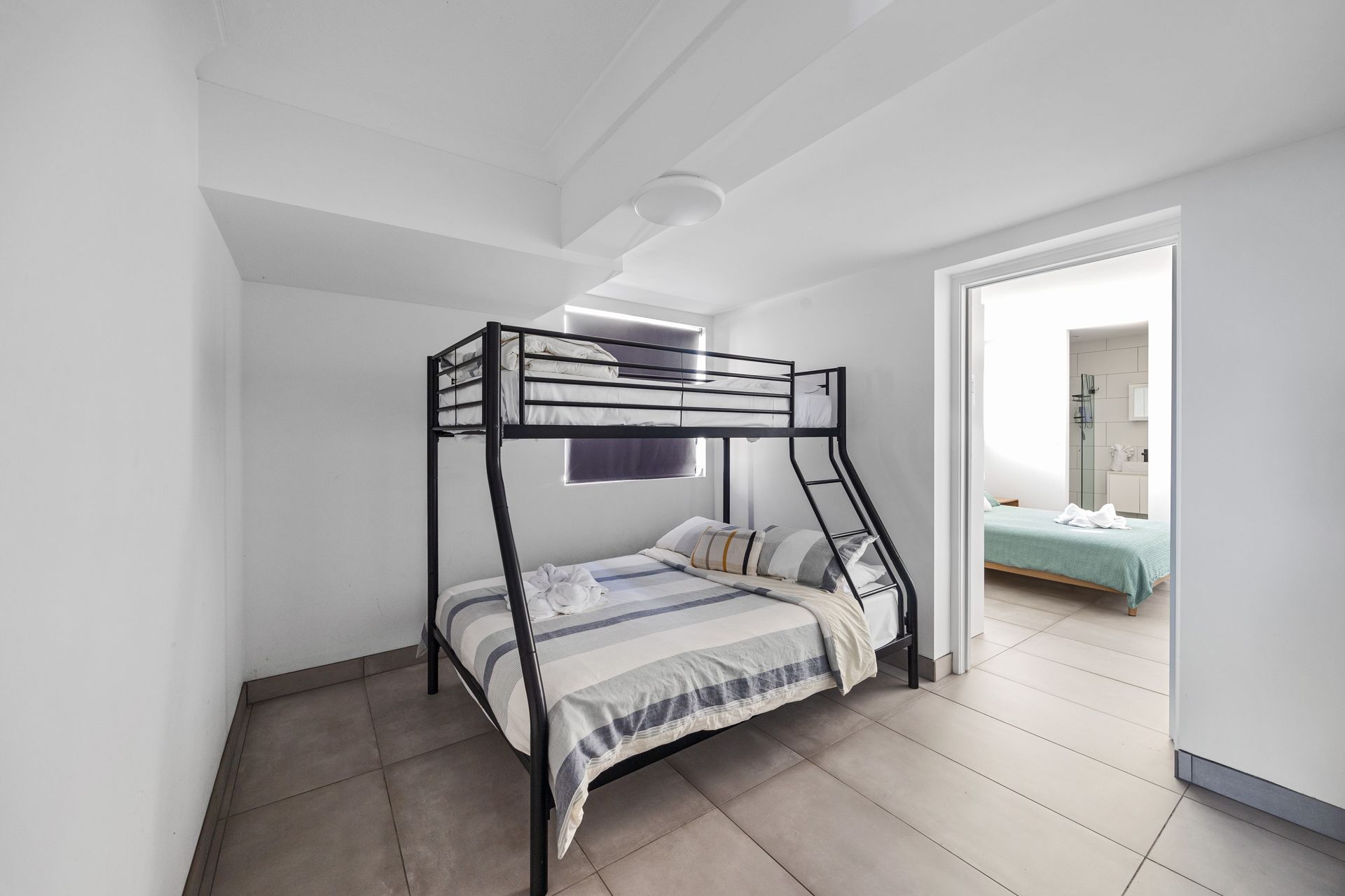 Designed with ease and comfort in mind, the apartment features three bedrooms. The master bedroom offers a queen bed and a private ensuite, along with its own split system air conditioner. A second bedroom includes a double bed, while the third sleeping space features a tri bunk. As the tri bunk is positioned in the entry area rather than an enclosed room, it is best suited to children.