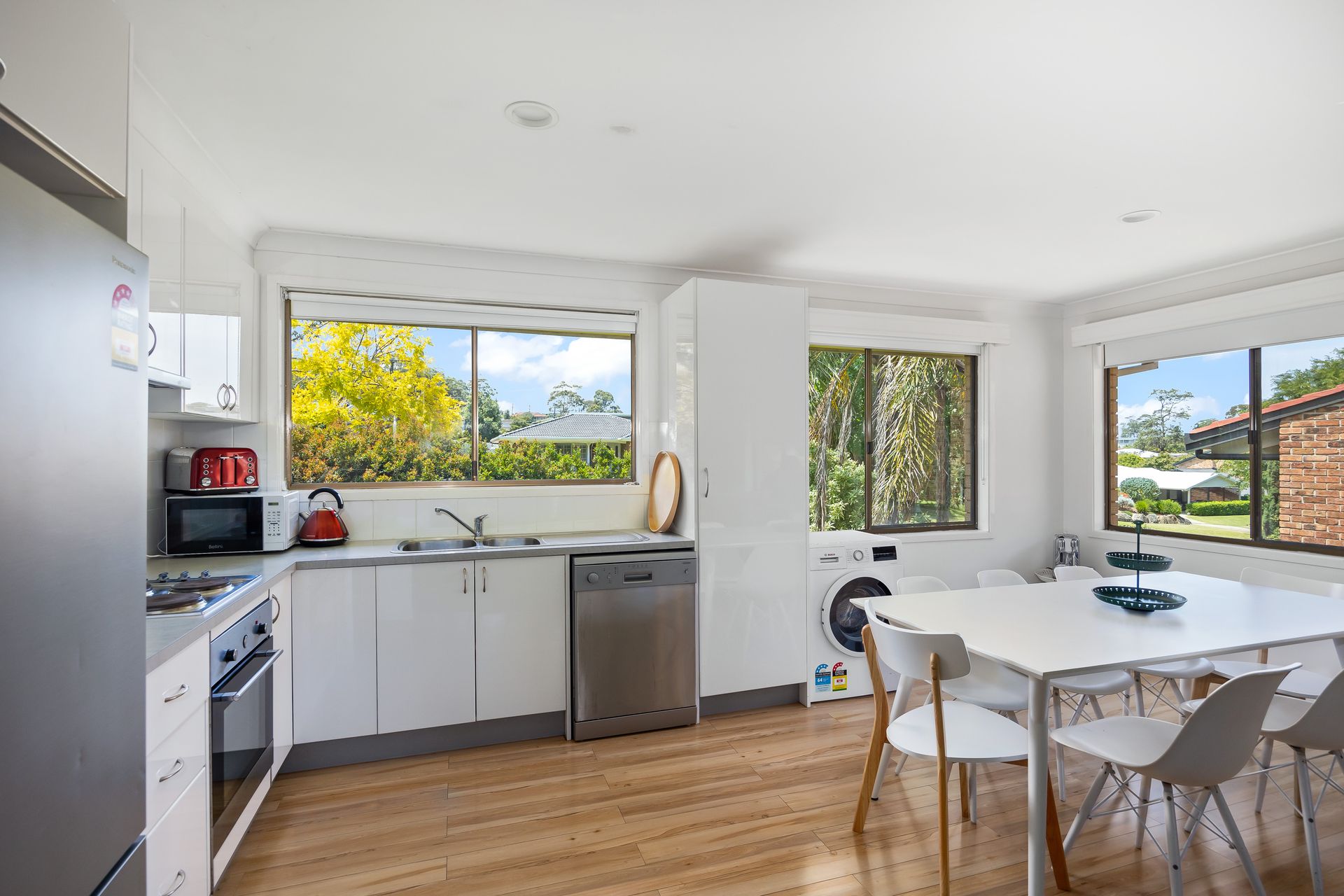 Outdoors, a fully fenced backyard invites you to enjoy the fresh coastal air while overlooking the peaceful surrounds of the Hilltop Golf Course. Whether it is a morning coffee in the garden, a family barbecue, or simply letting the children play, this home has been designed for relaxed holiday living.
