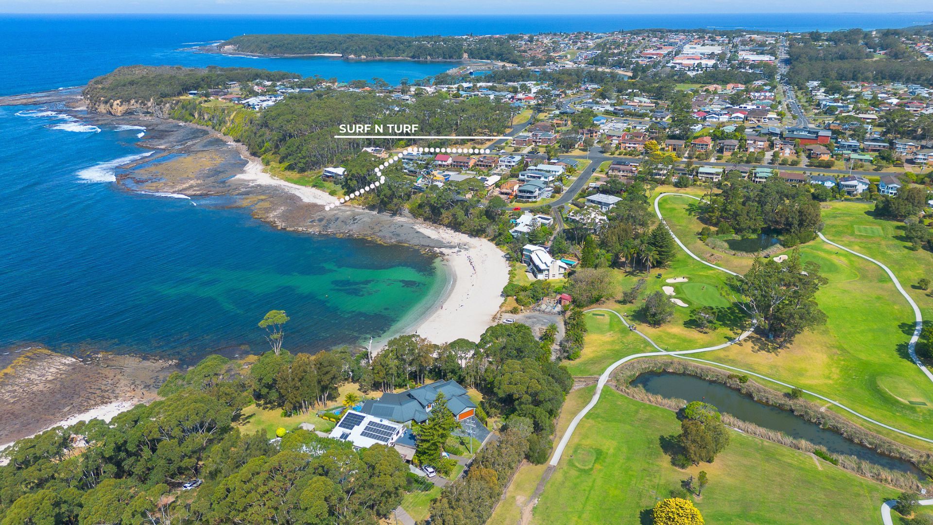 Step into Surf'nTurf, where beachside charm meets unforgettable experiences. Just 150 metres from the stunning Mollymook Beach, this apartment invites you to live the coastal holiday of your dreams. Start each morning with the sound of waves, then stroll to the beach for a refreshing dip or a surf at Golfcourse Reef. Golf enthusiasts will be thrilled with both the Mollymook Golf Club and Beachside Golf Course, each less than a kilometre away, offering leisurely rounds with scenic ocean views.