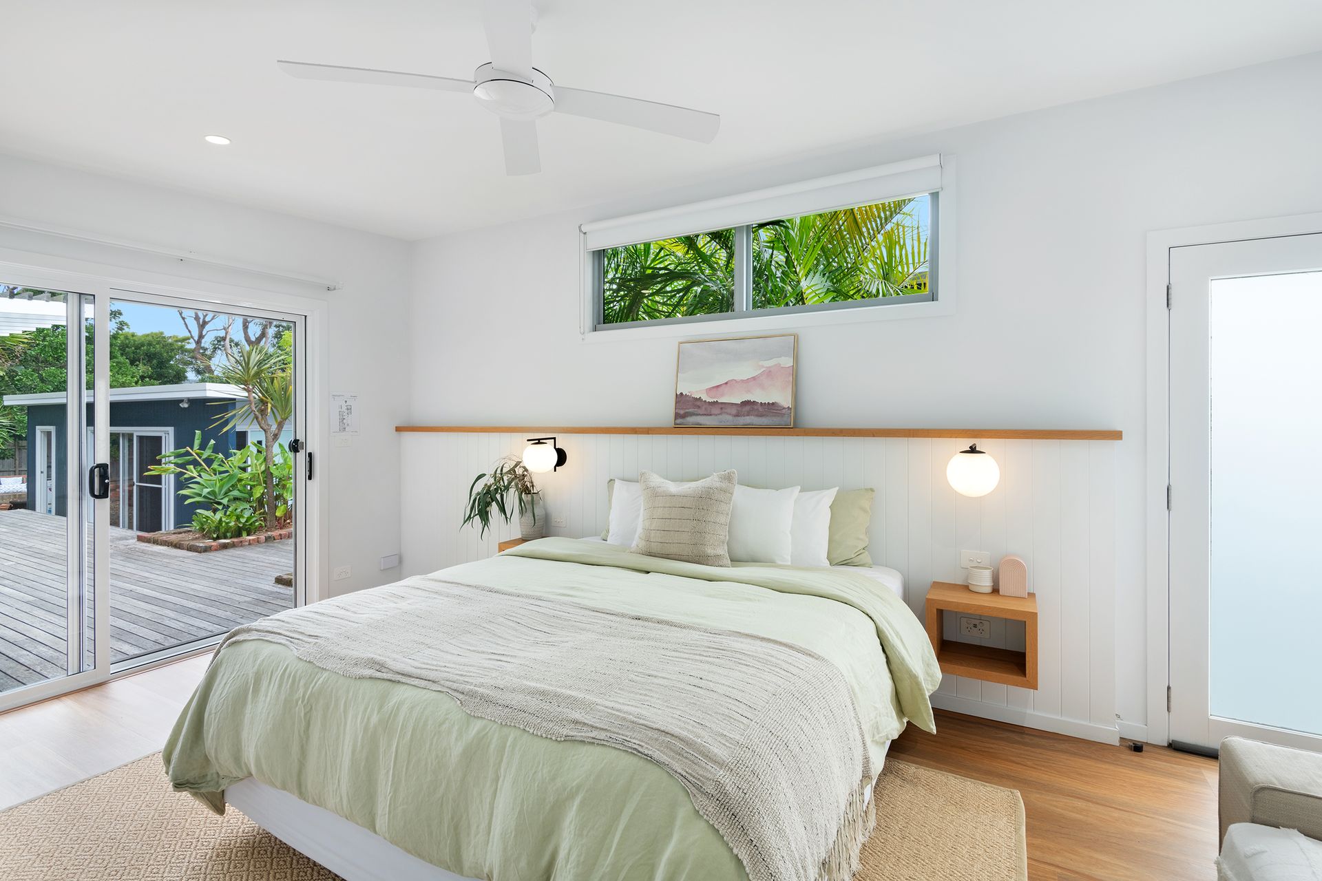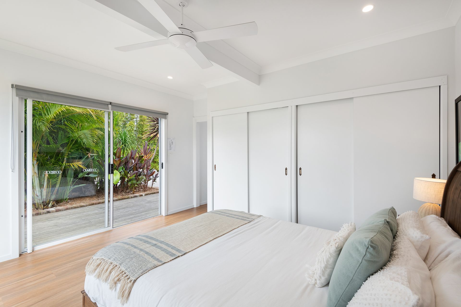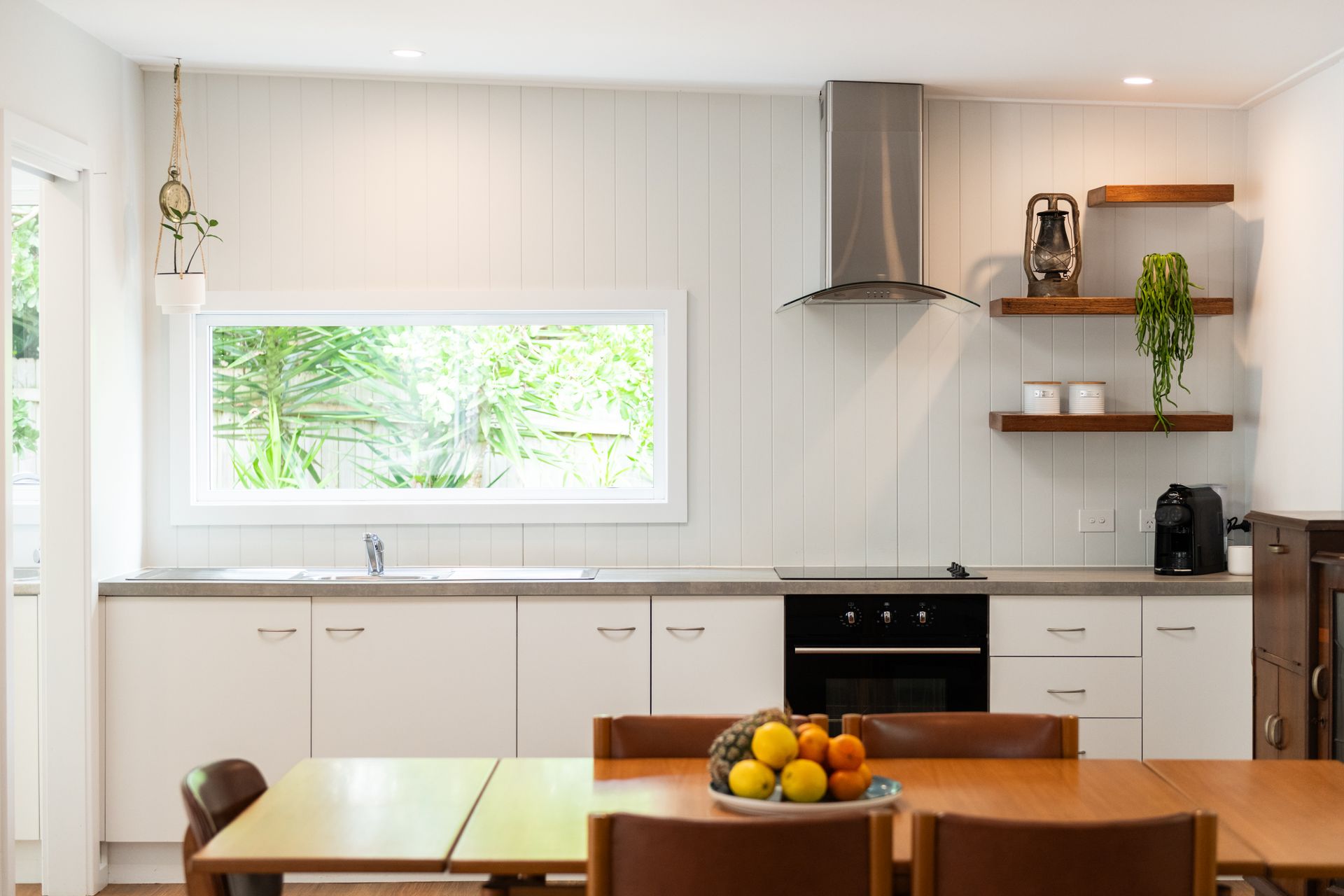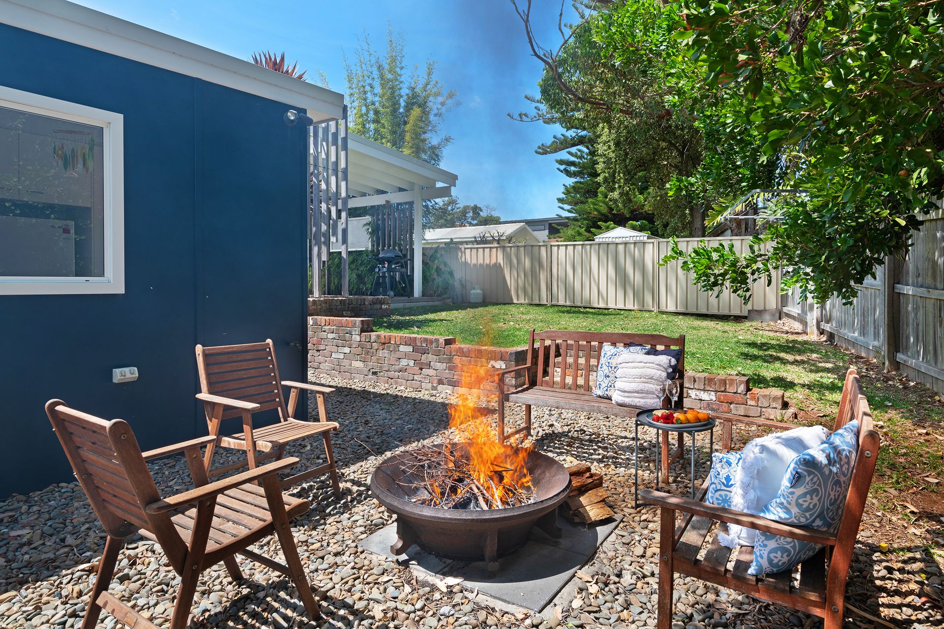 After a morning dip or a surf, rinse off in the private hot and cold outdoor shower before settling in for the afternoon on the generous timber deck. Surrounded by bamboo and established greenery, the garden evokes the feeling of a secluded tropical oasis. Share leisurely BBQ lunches, sip your coffee in the morning sunshine, or gather around the fire pit in the evening to toast marshmallows under the stars.