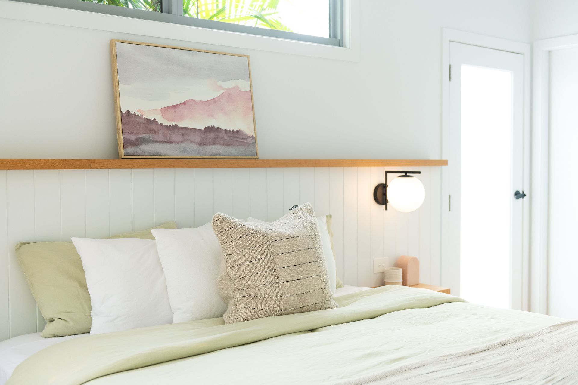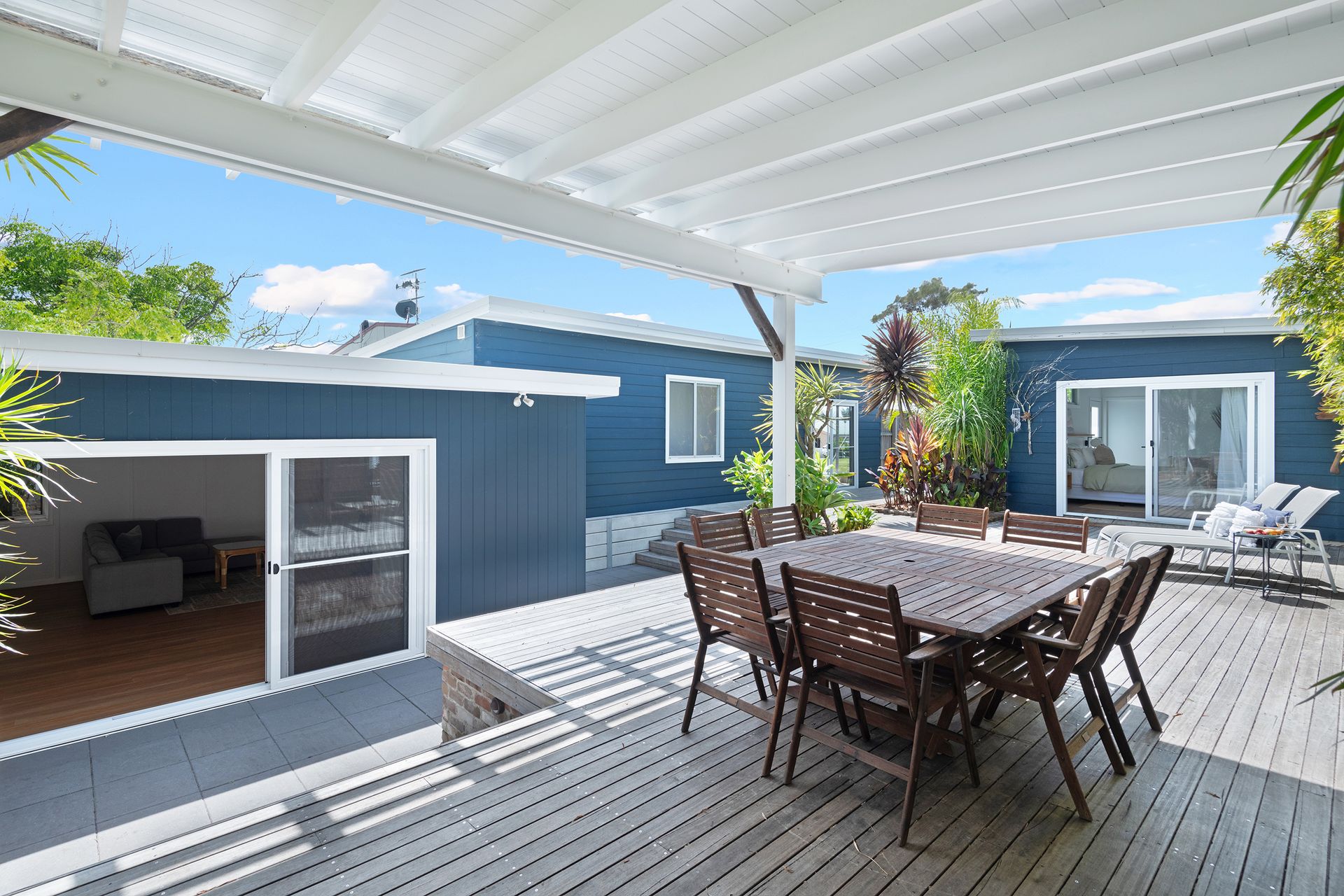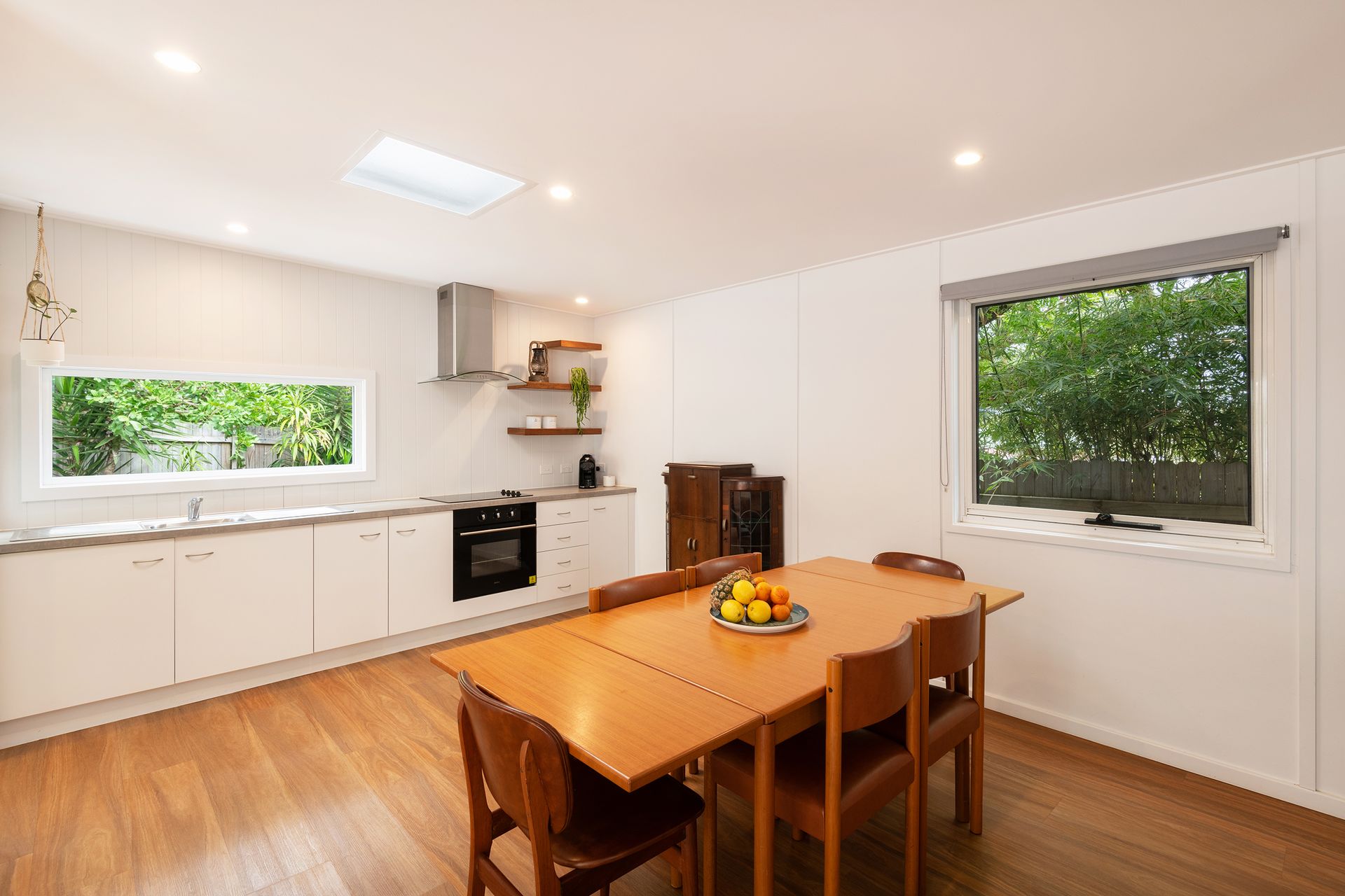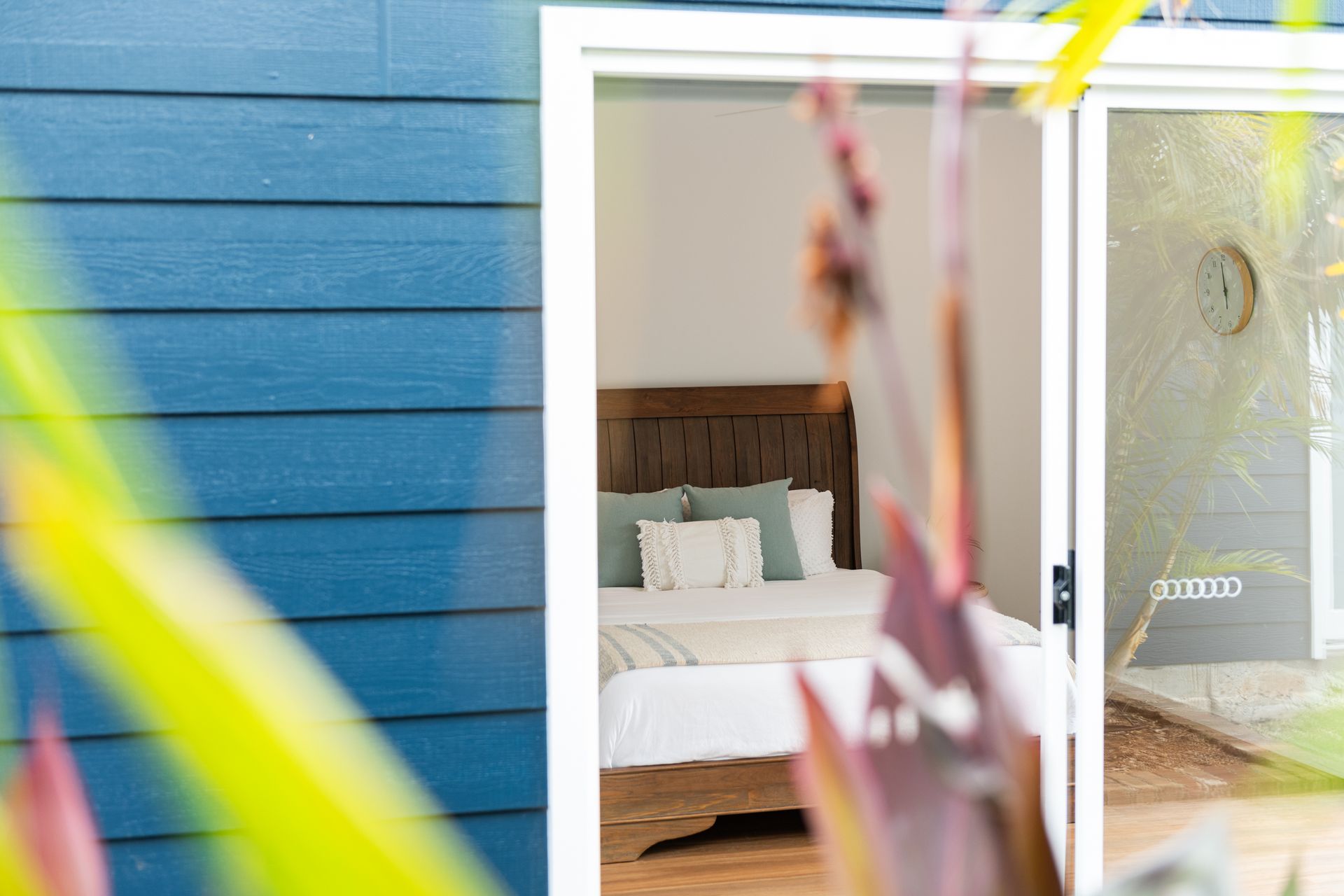 After a morning dip or a surf, rinse off in the private hot and cold outdoor shower before settling in for the afternoon on the generous timber deck. Surrounded by bamboo and established greenery, the garden evokes the feeling of a secluded tropical oasis. Share leisurely BBQ lunches, sip your coffee in the morning sunshine, or gather around the fire pit in the evening to toast marshmallows under the stars.